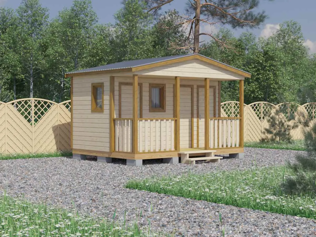 Бытовка для дачи в стиле хай-тек 4,8х3 с верандой4,8х314.4ДВП-Оргалит: